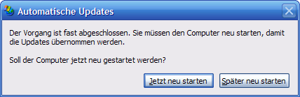 Wenn man ein Windows Update macht und es einen Neustart verlangt, man aber keinen machen will und diese Meldung genauso nervig findet wie ich,macht einfach das: