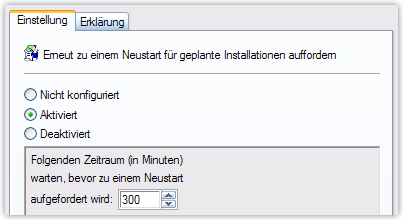 - Doppelklick auf ‚Erneut zu einem Neustart für geplante Installationen auffordern‚